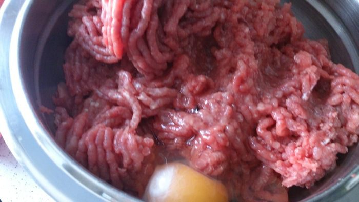 Прокрутить через мясорубку и вбить яйца.