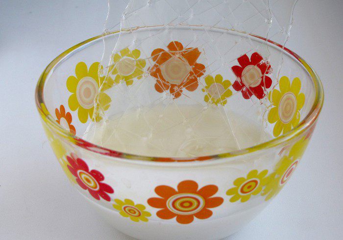 Желатин залить парой ложек воды или молока и оставить набухать.