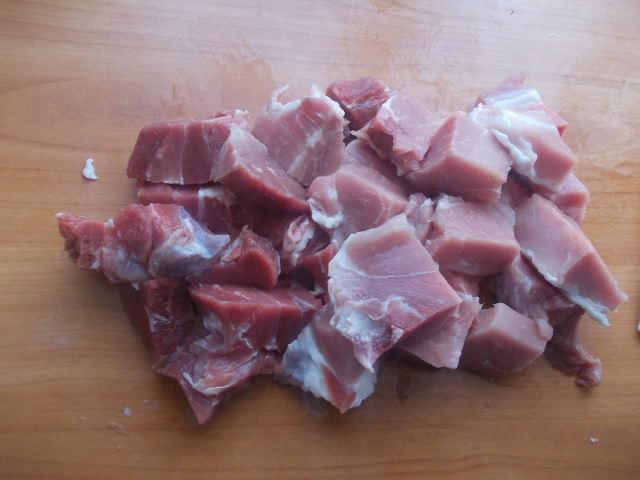 Мясо порезать и помолоть на мясорубке.