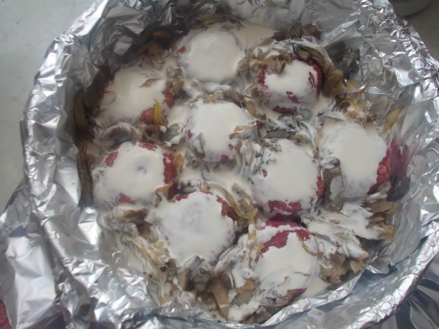 Второй вариант. Котлетки выложить в форму для запекания,или в разьемную с фольгой. Выложить котлетки полить их соусом и отправить в духовку 180С на 20 минут.