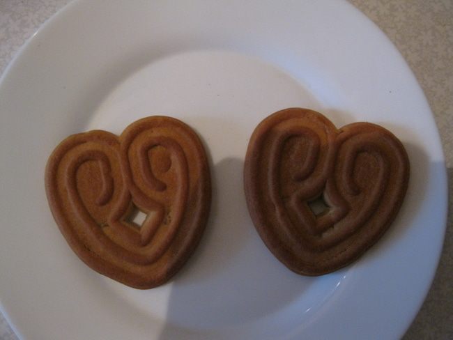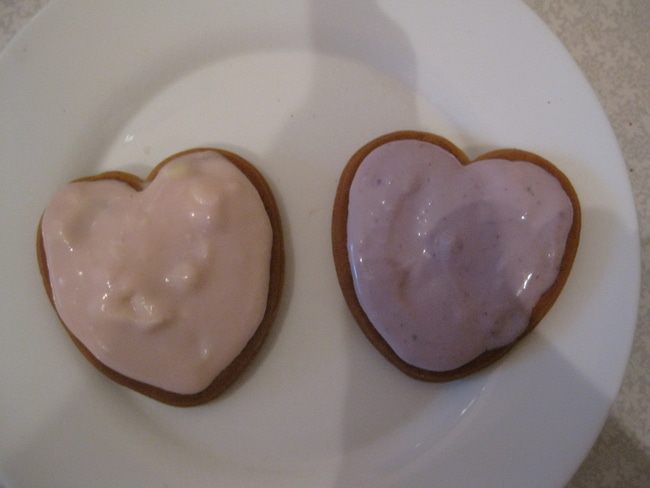 Розовый крем выкладываем на одно сердечко, сиреневый на другое сердечко.