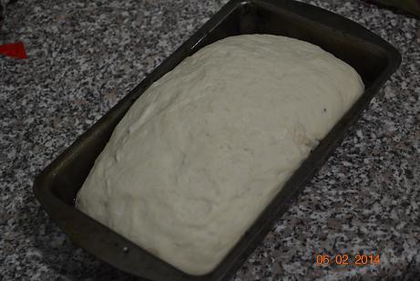 Подошедшее тесто переложить в смазанную маслом прямоугольную форму, оставить еще на 20 мин.
