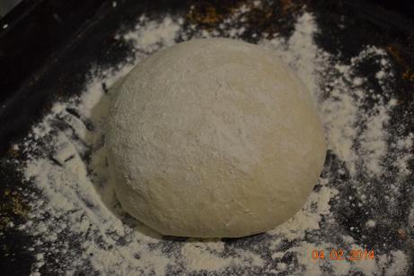 Подошедшее тесто обмять и слегка вымесить, на присыпаном мукой столе. Сформировать кругленькую буханочку, присыпать мукой, переложить на противень, присыпаный мукой, дать подойти в течении 20 мин.