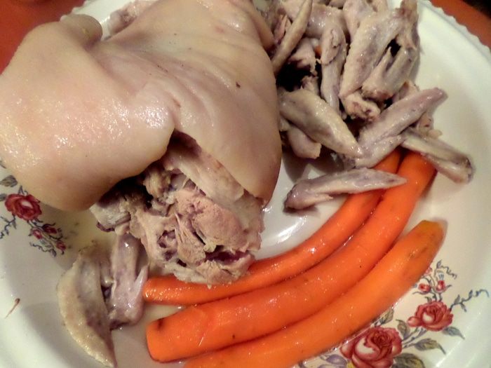 Я варила с 8 вечера до половины 12-го, т.е. 3,5 часа. Вынимаем на большое блюдо содержимое кастрюли.