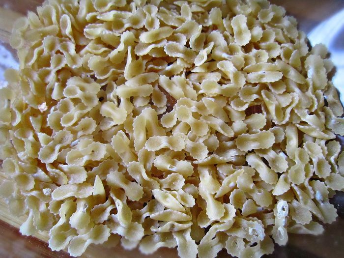 Нам потребуются мелкие макаронные изделия, например, паста mini farfalle Barilla.