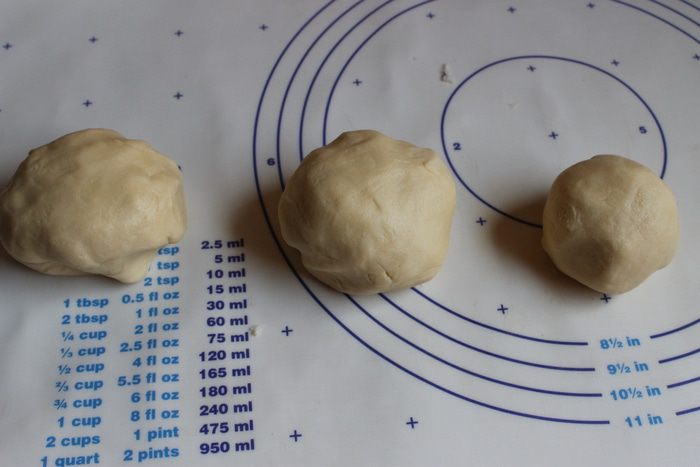 Разделим его на 3 колобочка. Один я сделала немного меньше.
