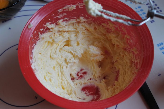Взбиваем масло с сахарной пудрой до бела. Можно добавить пакетик ванильного сахара.