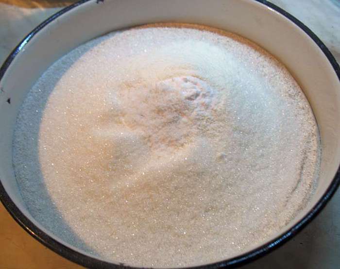 Муку смешать с разрыхлителем и просеять. К просеянной муке добавить сахар, соль, соду, ванильный сахар. Это сухая смесь.