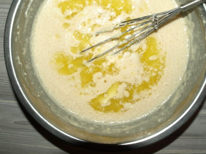 Масло растопить. Остудить, чтобы не было горячим. Добавить к остальным ингредиентам. Взбить