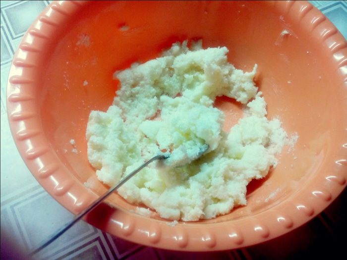 Мягкий маргарин растираем с сахаром.