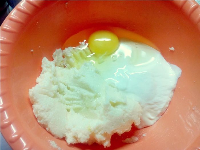 Добавляем сметану и яйцо. Перемешиваем.