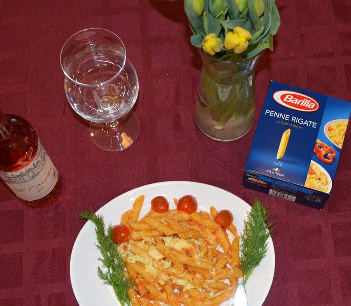 В это время отварите пенне, до состояния аль денте. Добавьте их к готовому соусу. Посыпьте прованскими травами и приправой для макарон.