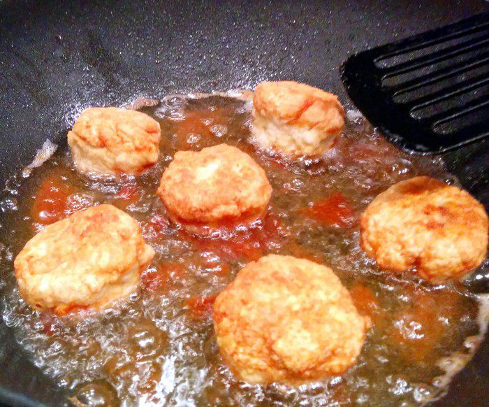 Скатываем небольшие шарики и жарим в растительном масле примерно 2-3 минуты до золотистой корочки.