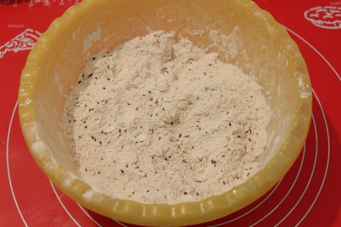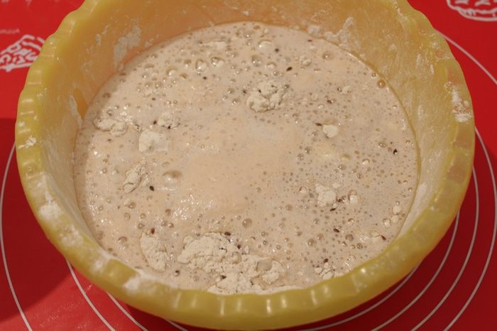Добавить дрожжевую смесь к муке ..
