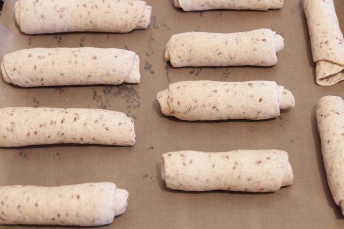 Разделить тесто на 10-12 частей.