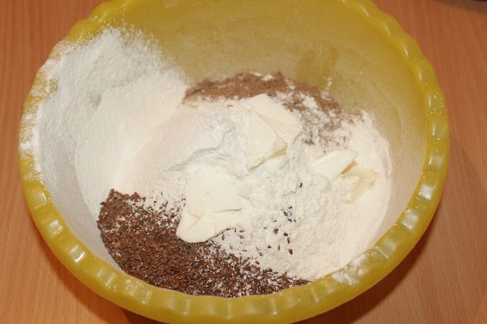 Хорошо размять пальцами масло, равномерно перемешать смесь.