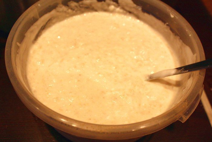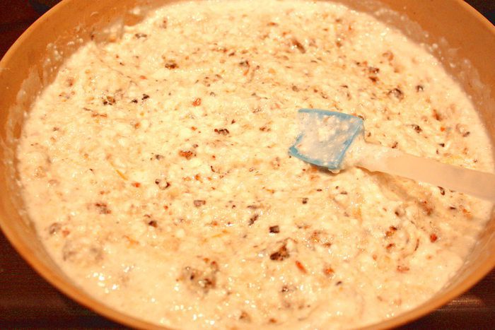 И выкладываем творожную смесь в форму (заранее смазанную маслом).