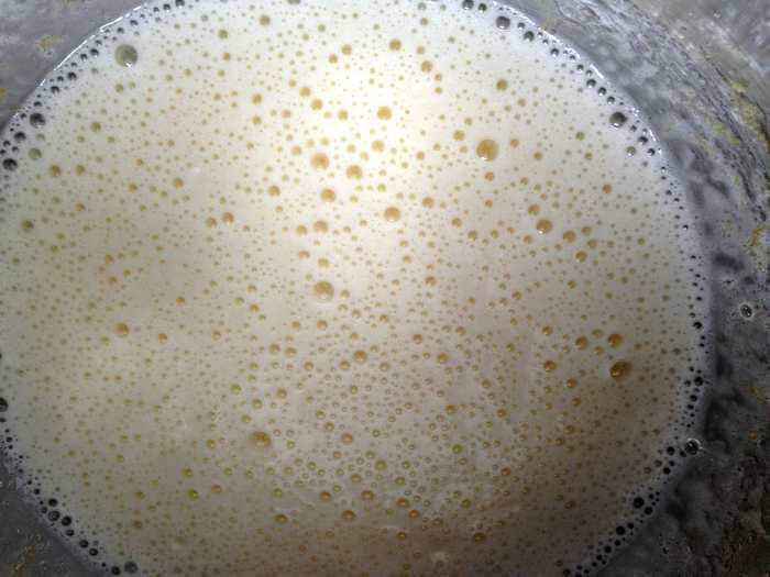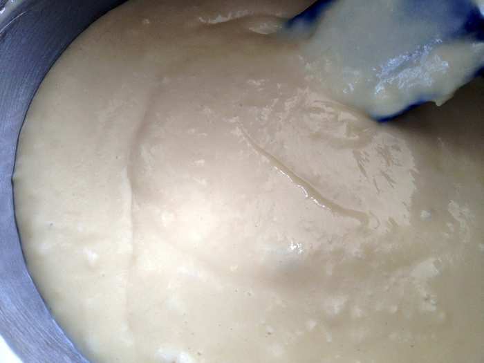 Влить молоко и растительное масло, перемешать до однородности.