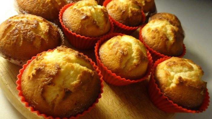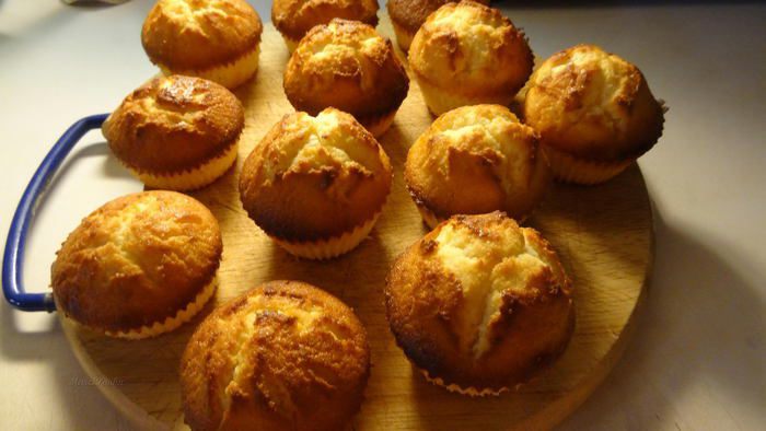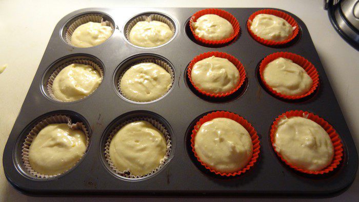 Заполнить формочки для маффинов получившейся смесью (она должна быть как густая сметана) почти до краев. Поставить в разогретую до 200° С духовку выпекаться примерно на 20 минут.