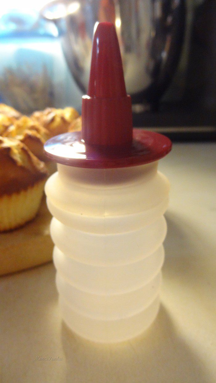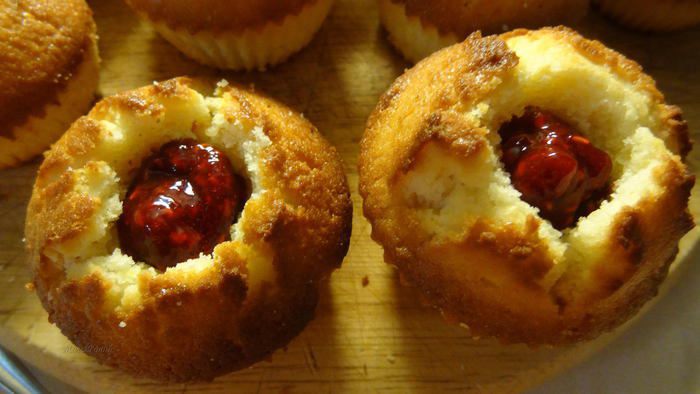 Для начинки маффинов малиновым джемом я использовала силиконовый шприц.