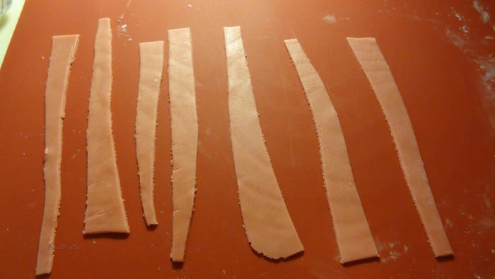 И нарежем его на полоски так, чтобы один край был шире другого.