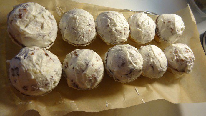 И обмазать наши маффины. Ножом выровнить слой крема. Отправить маффины в холодильник, чтобы крем схватился. Взбитые сливки помогут нам тем, что с таким покрытием, наш марципан не сползет, а хорошо будет держаться на поверхности маффинов.