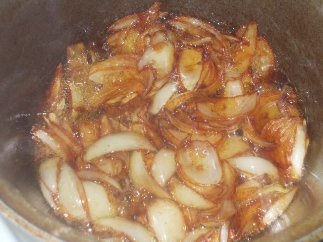 Варим, пока не появится легкий, карамельный оттенок.