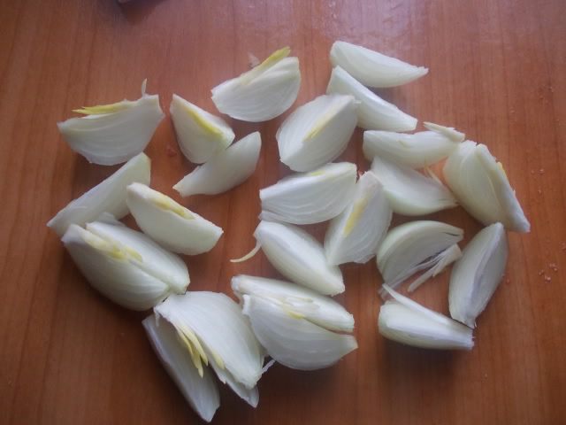 Почистить и порезать луковички на дольки.