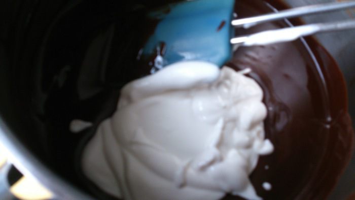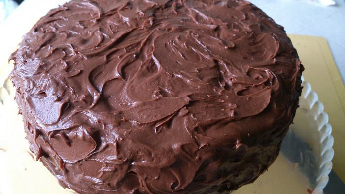 Этот вкуснейший тортик пример того, как взаимное общение на сайте влияет на наше кулинарное творчество. Сейчас появилось очень много разных кулинарных передач и кулинаров, которые их ведут. Кончно, не всегда хватает времени, чтобы все увидеть, услышать и проанализировать. Вот тут и раскрывается вся прелесть нашего общения))) Спасибо Иришке Арканниковой за то, что открыла для меня Найджелу Лоусон. Этот тортик я готовила по рецепту Найджелы, но не смогла удержаться от своего дополнения))) Корж безе из рецепта торта Мокко от Юлии Высоцко в середине прекрасно дополнил этот плотный, слегка влажный бисквит. В целом получился торт-мечта всех шокоголиков))Торт пекла папе в день рождения, поэтому фото в разрезе делалось в спешке во время застолья. Но я думаю, оно передаст вам всю прелесть этого тортика! Одно важное дополнение. Сахарную пудру нужно брать только готовую, ни в коем случае не молоть сахар самостоятельно. Мелкие крупинки, которые не размололись, будут в глазури как песок, они не растворятся!