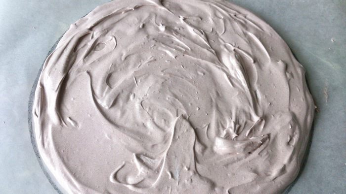 Замесить корж безе как указано в рецепте торта Мокко http://www.edimdoma.ru/retsepty/4627-tort-mokka. Я взяла половину указанного количества ингридиентов, но в следующий раз сделаю безе на всю порцию, чтобы