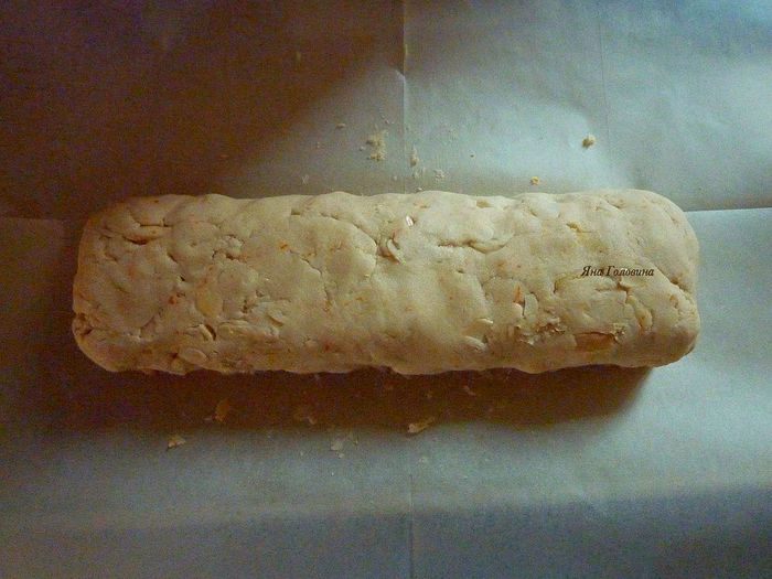 На лощеной бумаге сформировать тесто в прямоугольный кирпич, размером в длину 30 см ширину 7 см.