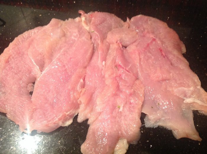 Филе индейки разрежьте вдоль, но не до конца, разверните, накройте пищевой пленкой и отбейте.
