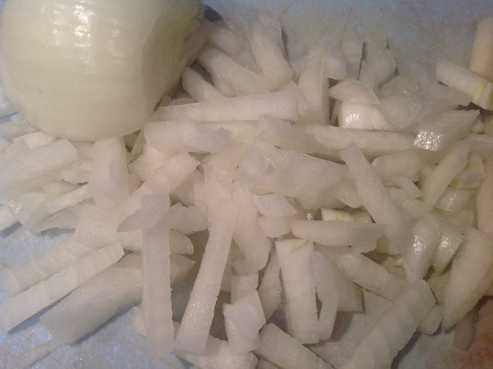 Лук мелко нарежьте.
