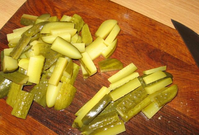 Огурцы тоже нарезать соломкой.