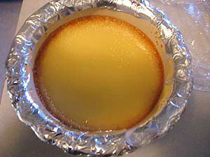 Поставьте формочки в большой противень или огнеупорное блюдо, поместите на средний уровень в духовку и налейте в него кипяток на 2/3 высоты ваших формочек.