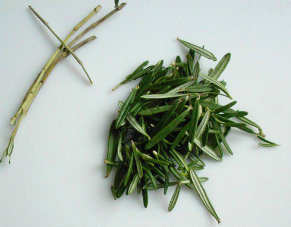 Оборвите с розмарина листочки и мелко нарежьте их.