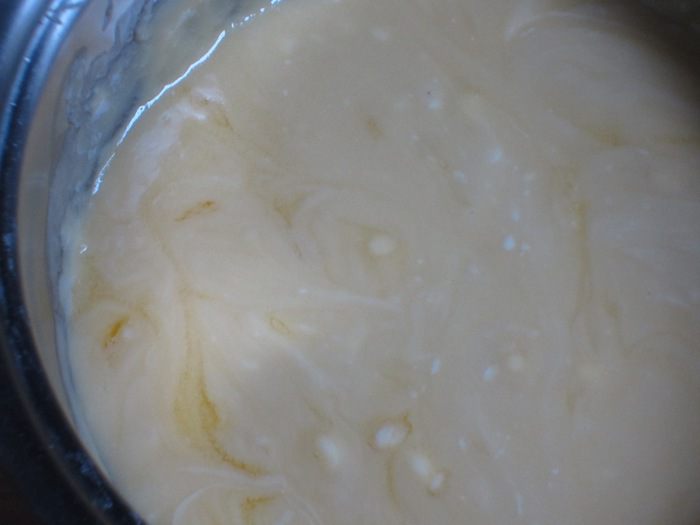 Добавить нарезанное на кусочки сливочное масло и хорошо перемешать до полного растворения масла.