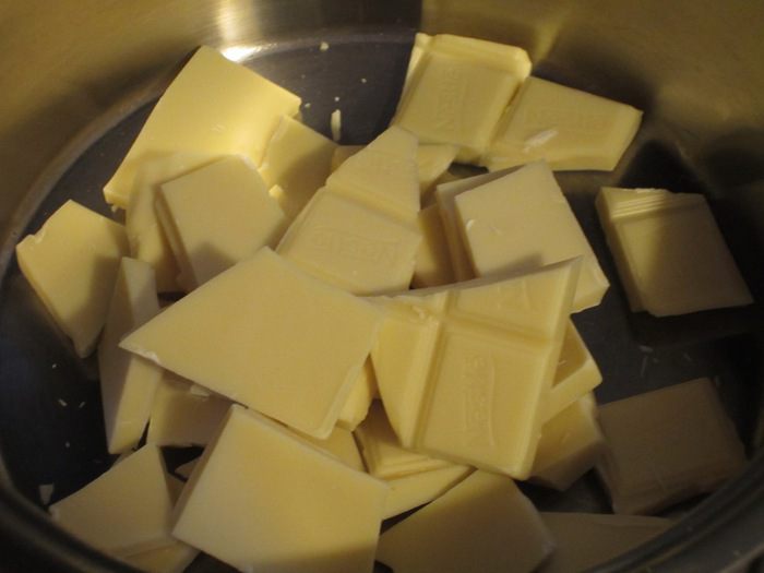 На водяной бане растопить белый шоколад.