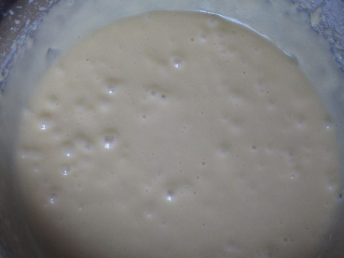 Муку просеять и ввести в тесто, тщательно перемешать.