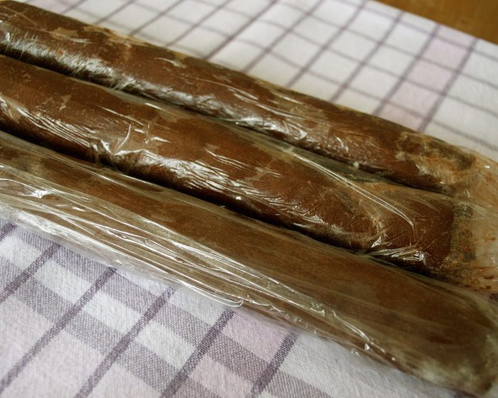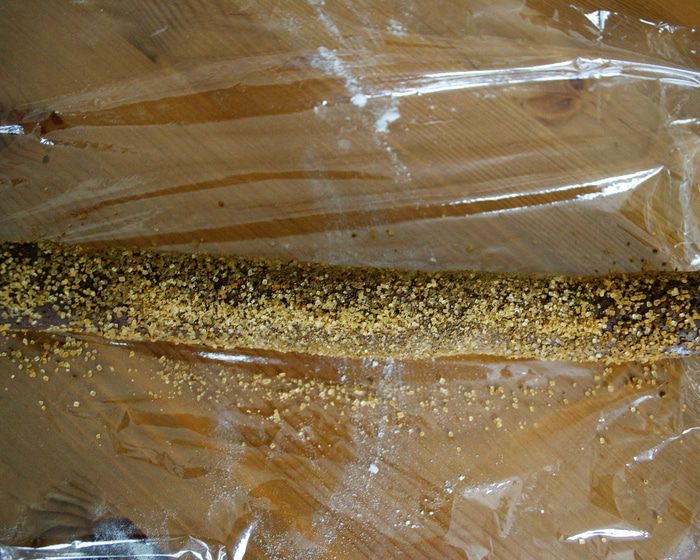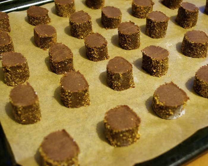 Духовку разогреть до 180 С. Брусочки нарезать на кружочки по 2 см толщиной... Не советую резать тоньше, так как при выпечке они немного осядут и приобретут конусообразную форму. Когда пекла в первый раз, печенье получилось немного тоньше, чем хотелось бы. Так что, 2-2,5 см - не меньше! ))) Выложить на противень и выпекать около 15 минут.