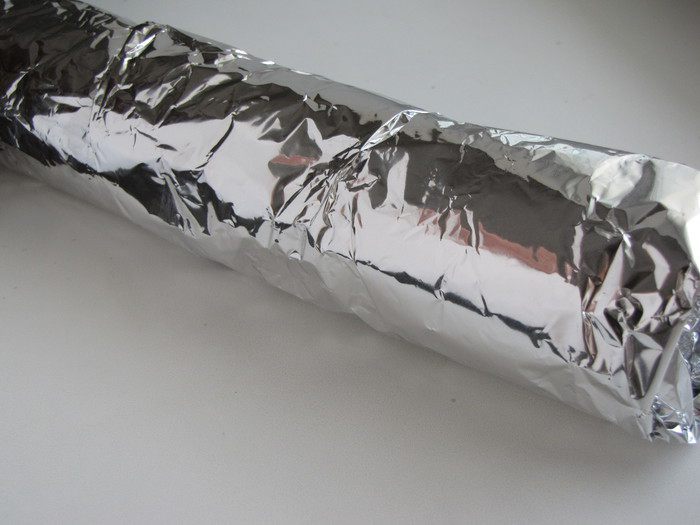 Рулет обернуть фольгой и охладить в холодильнике в течении часа.