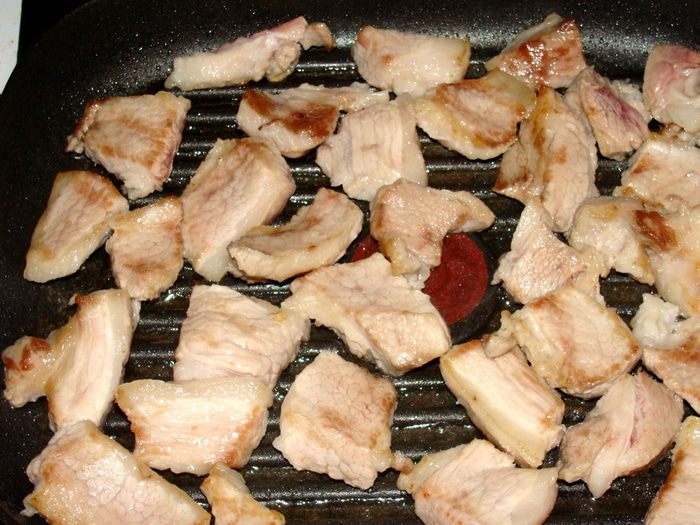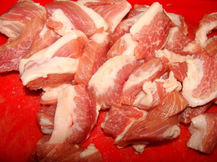 Мясная начинка: Мясо порезать кусочками.