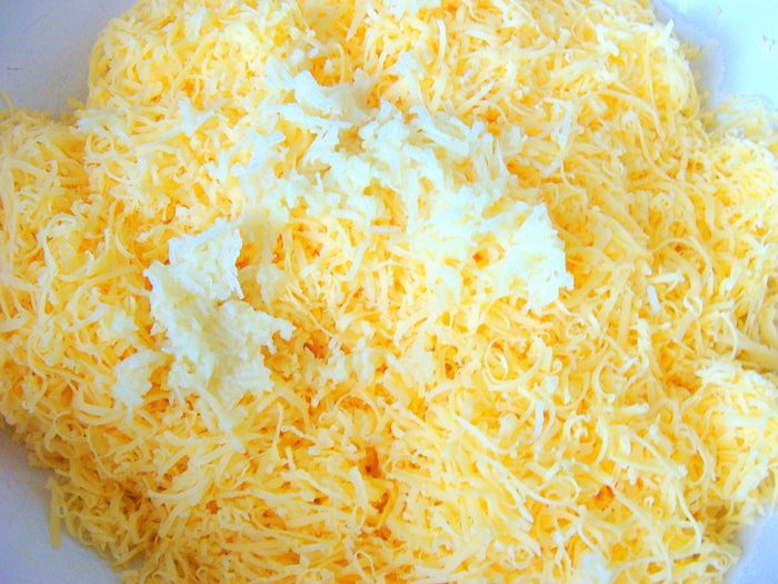 По краям сырные блинчики.