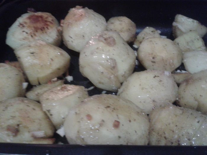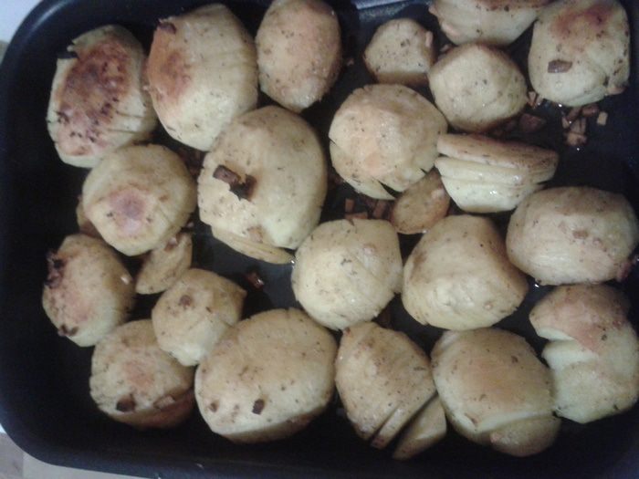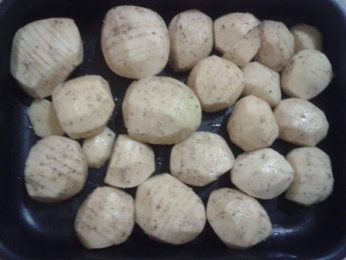 Минут через 20 достать картофель и еще раз полить немного маслом.