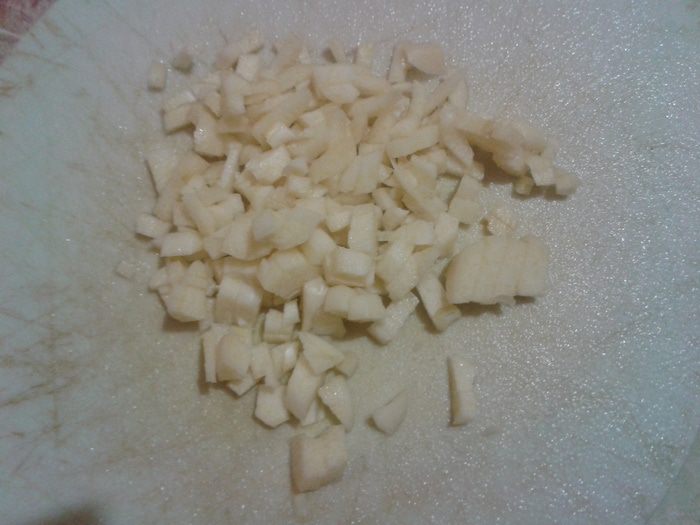 Чеснок почистить и порезать небольшими кубиками.