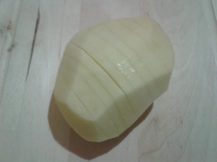 Картофелину прорезать достаточно часто но не до конца (не разрезая).
