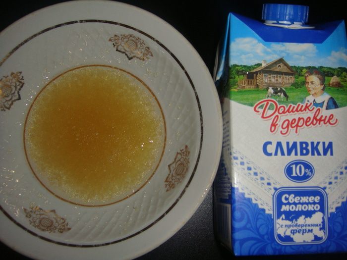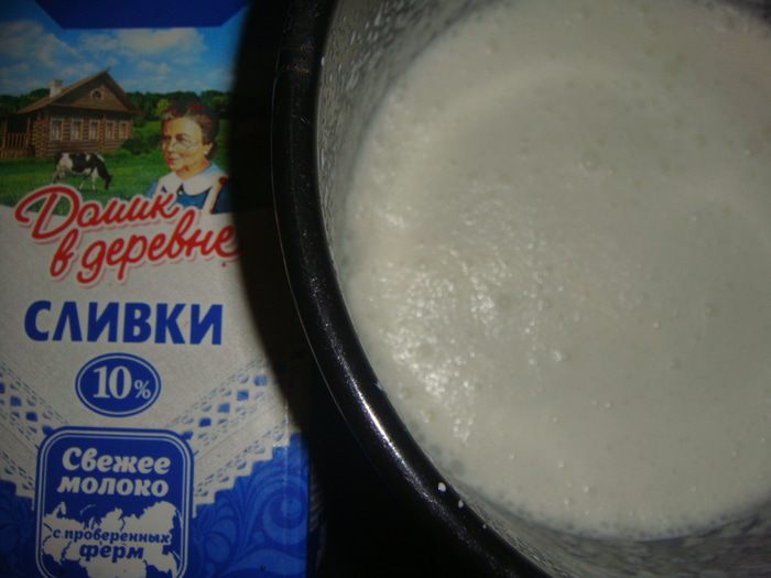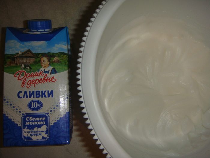 Сливки «Домик в деревне» слегка взбить до образования пены.