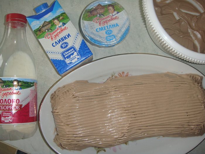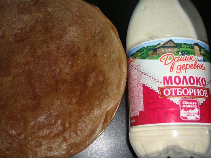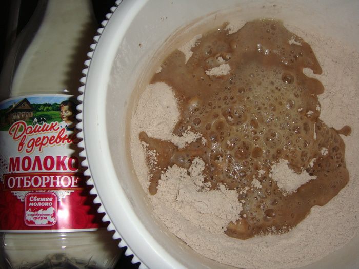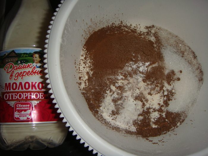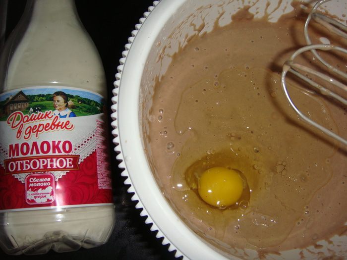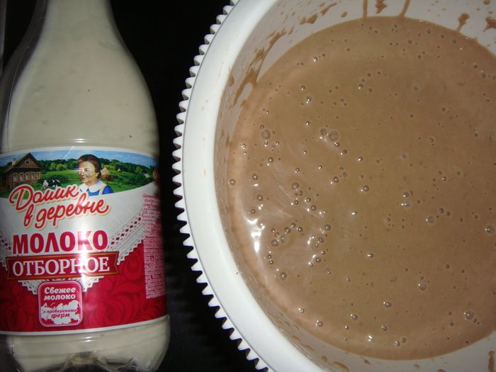 Вливаем стакан кипятка, и два стакана теплого молока «Домик в деревне».