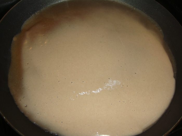 Жарить блинчики с двух сторон на раскаленной сковороде.