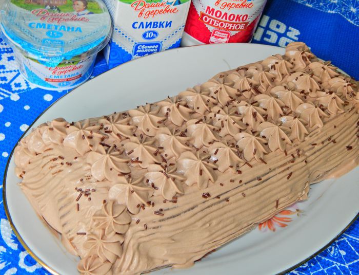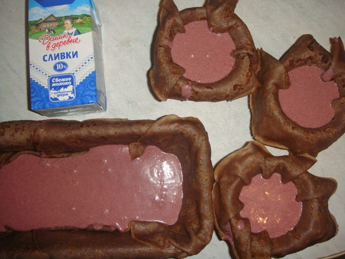 Шоколадные блинчики с малиновым муссом, покрытые сливочно-сметанным кремом принесут вам неповторимые вкусовые эмоции.